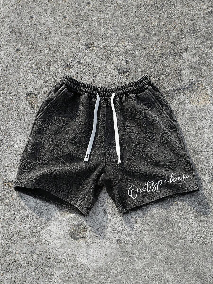 Men's Embroidered Snow Flake & Letter Slant Pocket Drawstring Waist Shorts