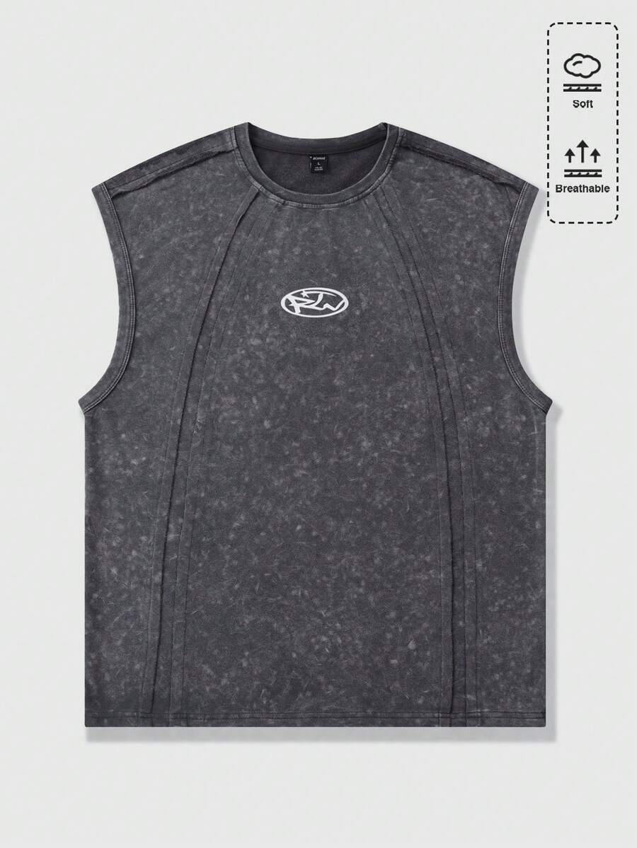 Men's Geometric Pattern Patchwork Crew Neck Casual Washed Tank Top Spring/Summer