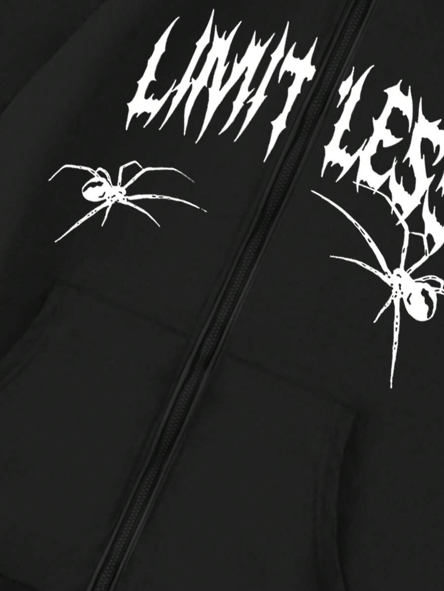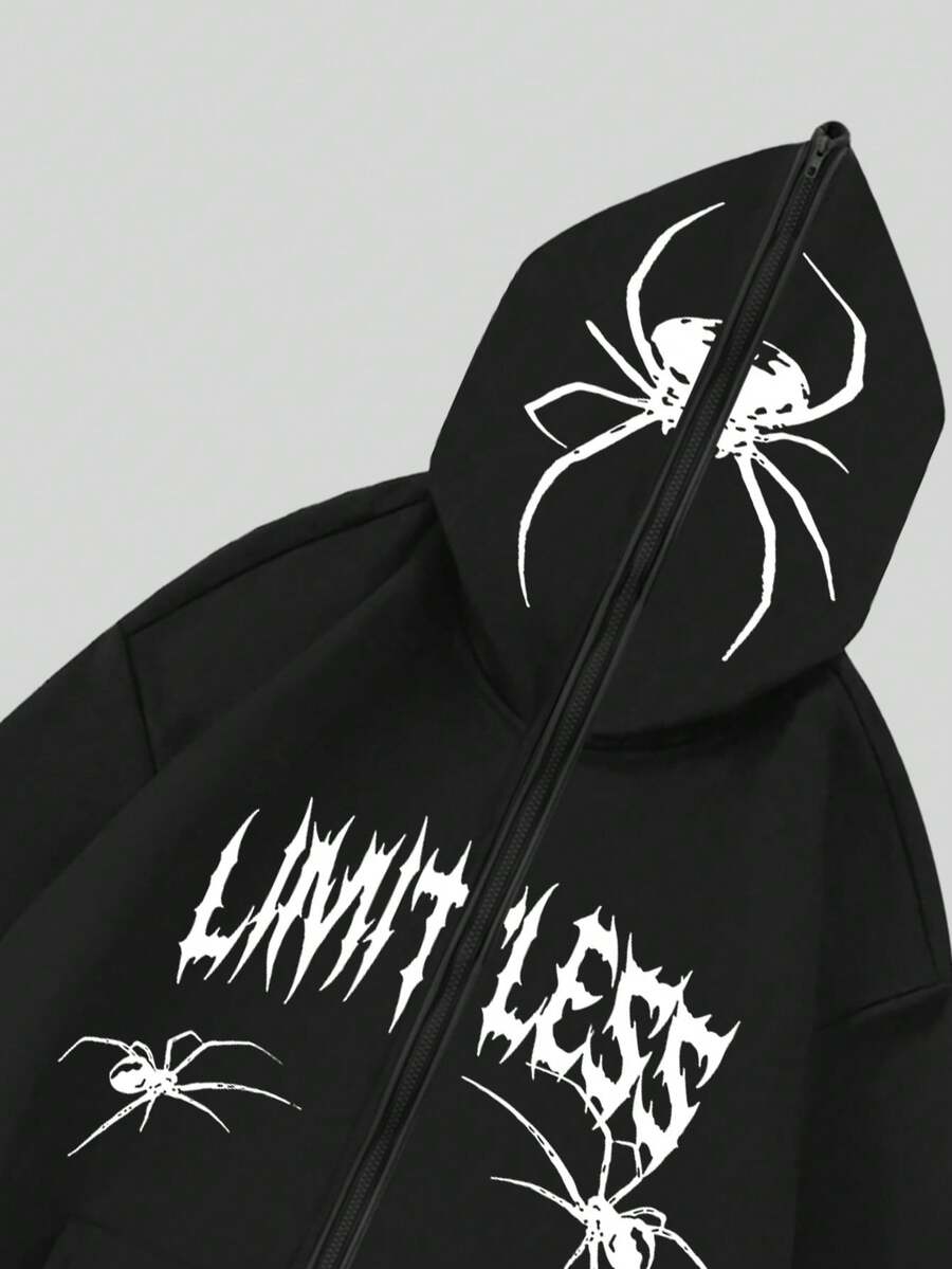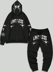 Men's Goth Style Zipper Hoodie With Thermal Lined 2pcs Set For Daily Wear In Spring, Autumn And Winter
