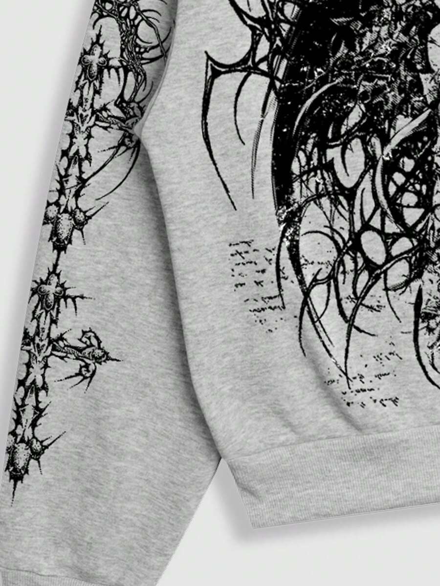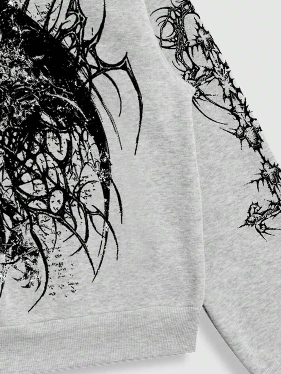 Men's Gothic Anime Figure Print Thermal Lined Casual Hoodie