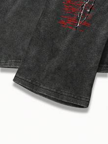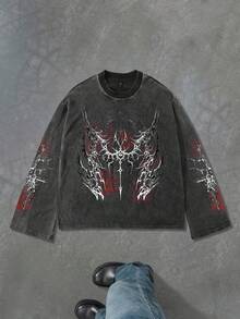 Men's Gothic Print Crew Neck Casual Long Sleeve Washed T-Shirt