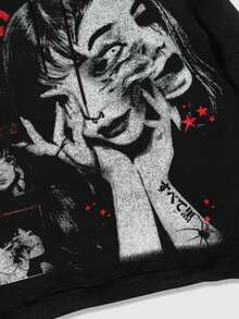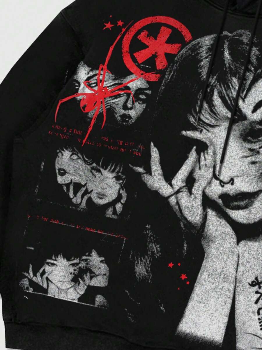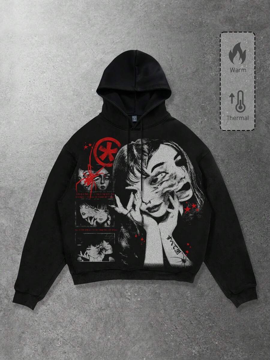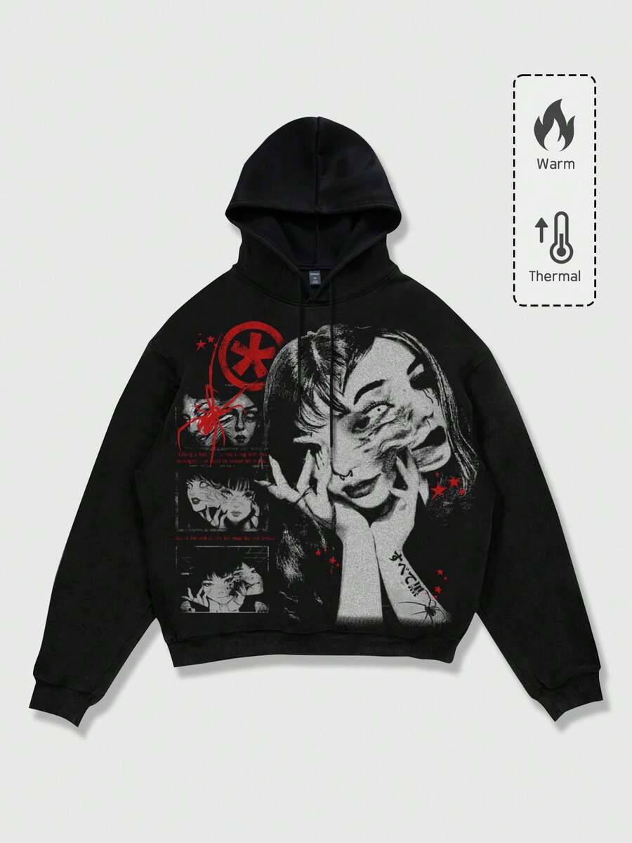 Men's Graphic Anime Print Drawstring Hooded Casual Sweatshirt, Autumn/Winter