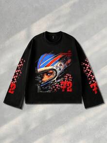 Men's Heavyweight Printed Long Sleeve T-Shirt, Vintage Street Style
