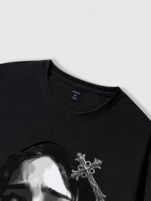 Men's High Street Vintage Round Neck T-Shirt Featuring Embossed Portrait Design, Suitable For Casual Wear In Spring And Summer