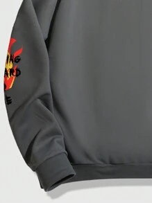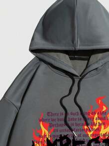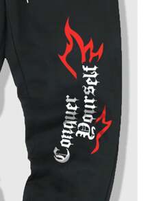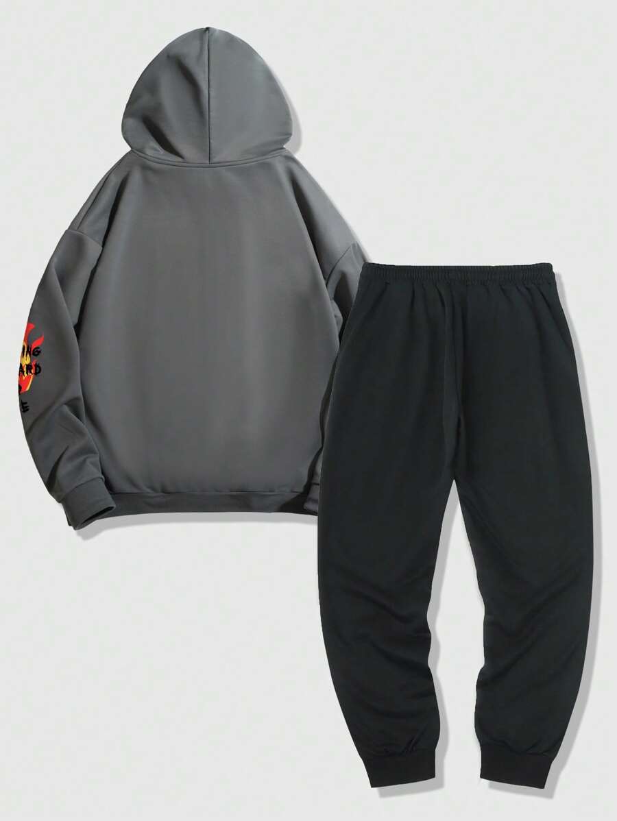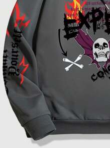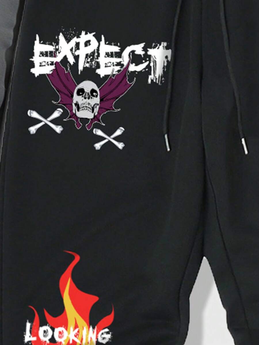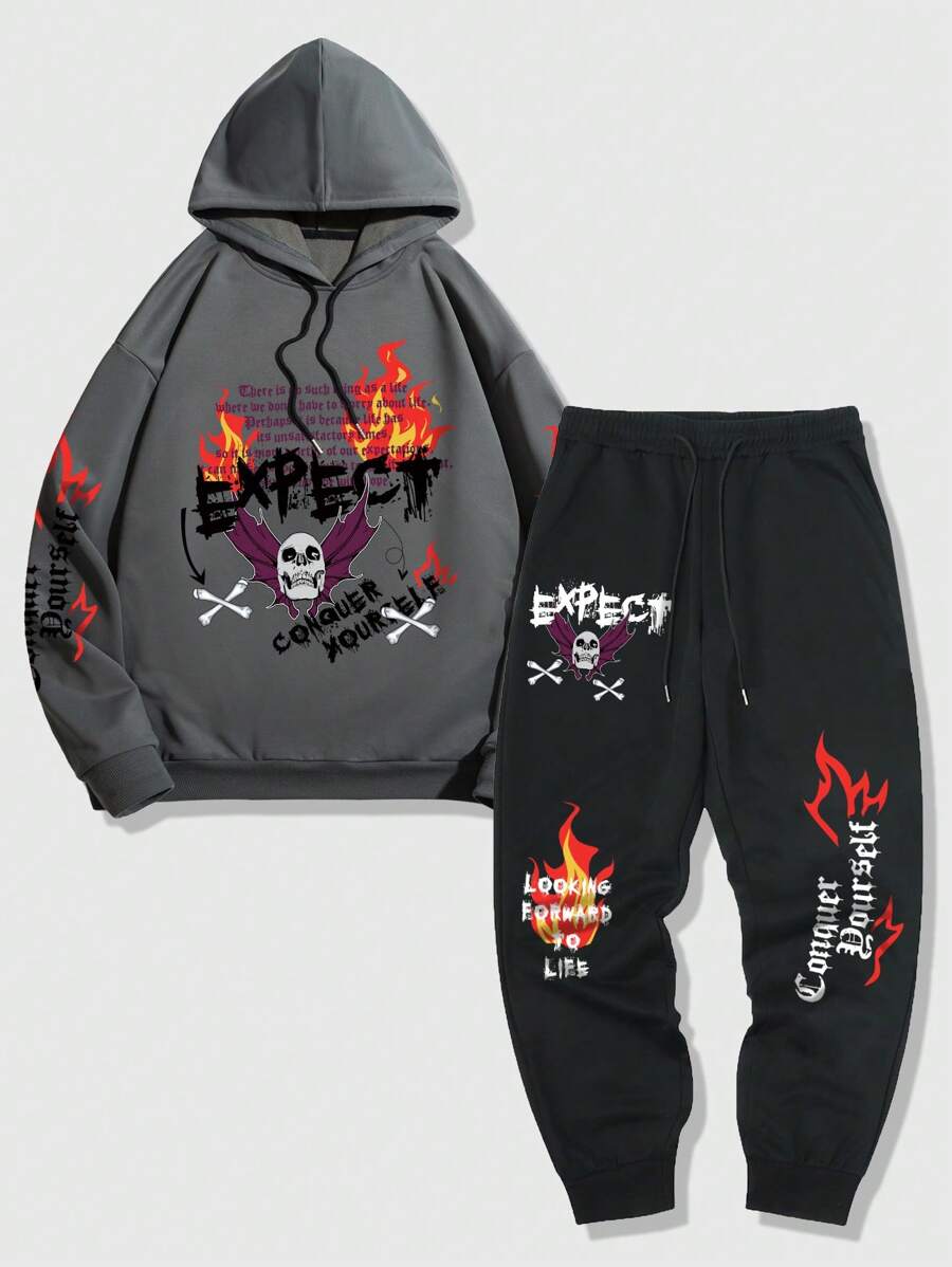 Men's Hooded Sweatshirt + Pants Set With Slogan & Skull Pattern Print