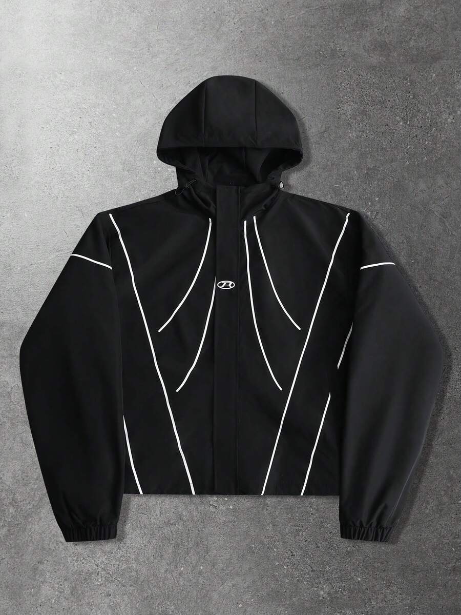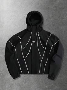 Men's Jacket And Coat, Street American Design Sense Sprouting English Print Motorcycle Windbreaker Jacket