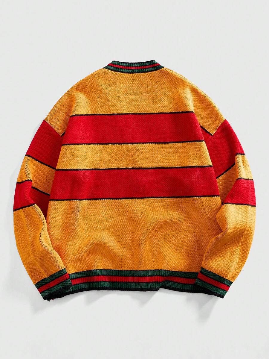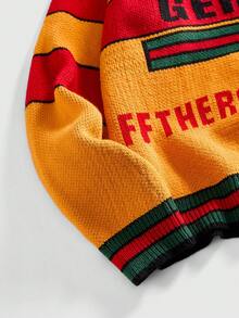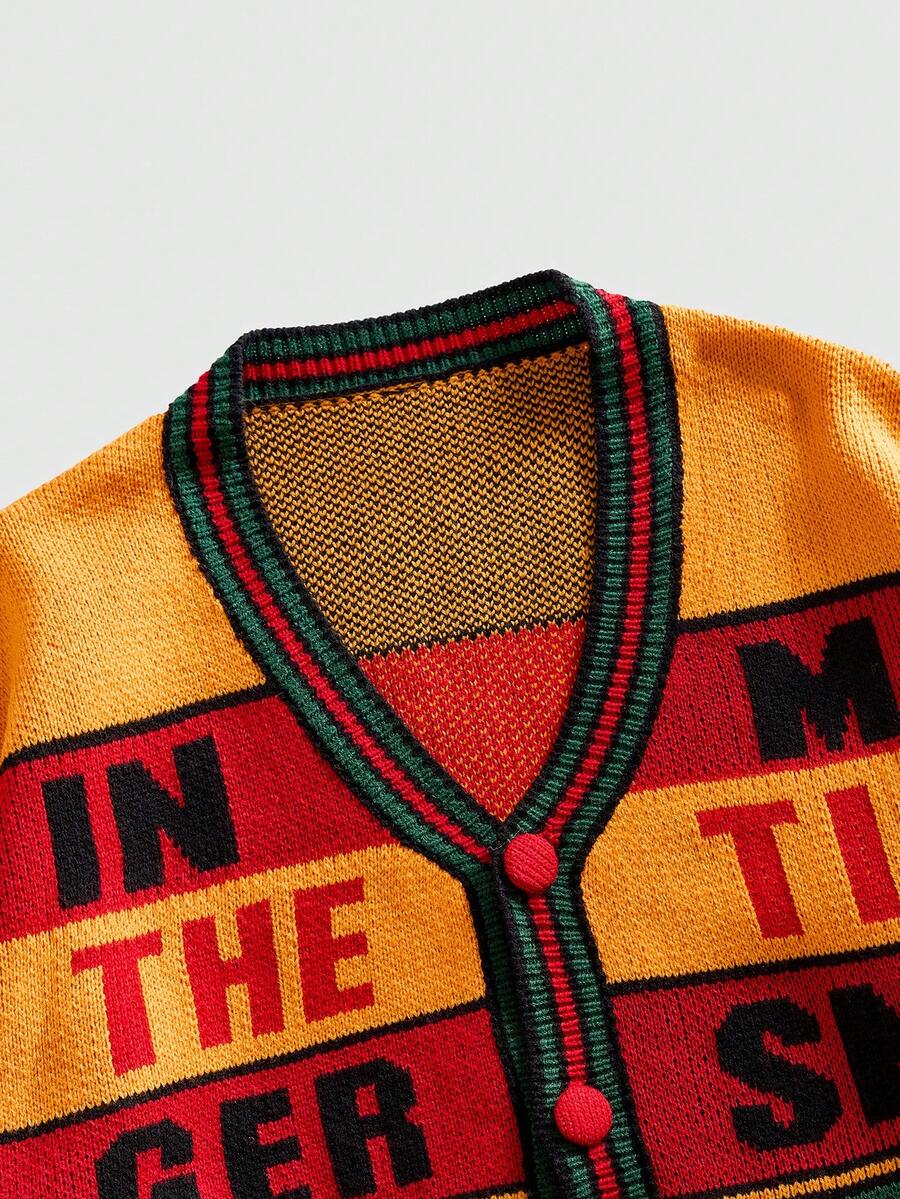 Men's Letter Jacquard Cardigan, Retro Streetwear