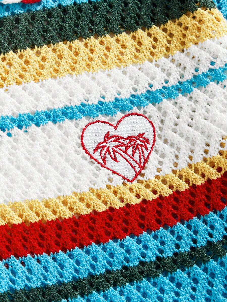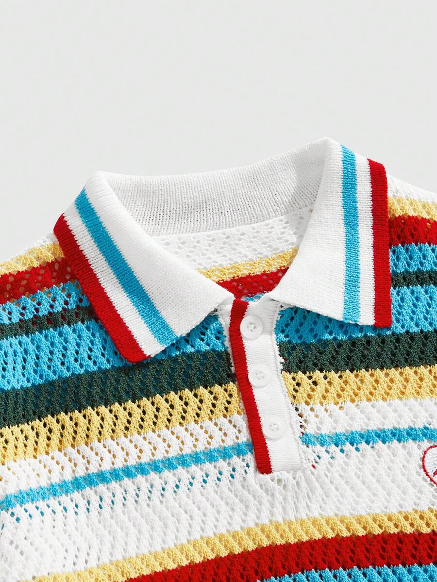 Men's Preppy Embroidered Pattern Loose Knit Polo Shirt, Knitted Short Sleeve Top