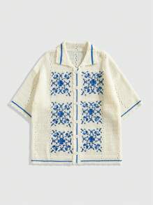 Men's Street Life Embroidery Pattern Loose Knit Casual Short Sleeve Shirt