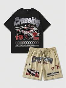 Men's Street Racing Print Short Sleeve 2-Piece Set
