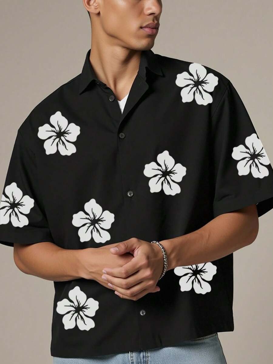 Men's Summer Casual Floral Print Short Sleeve Shirt