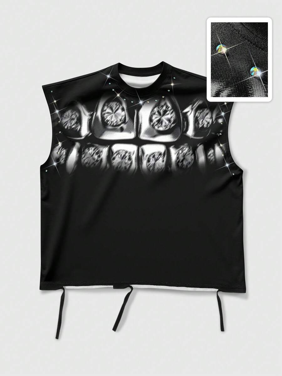 Men's Summer Fashion Street Rhinestone Teeth Print Loose Tank Top