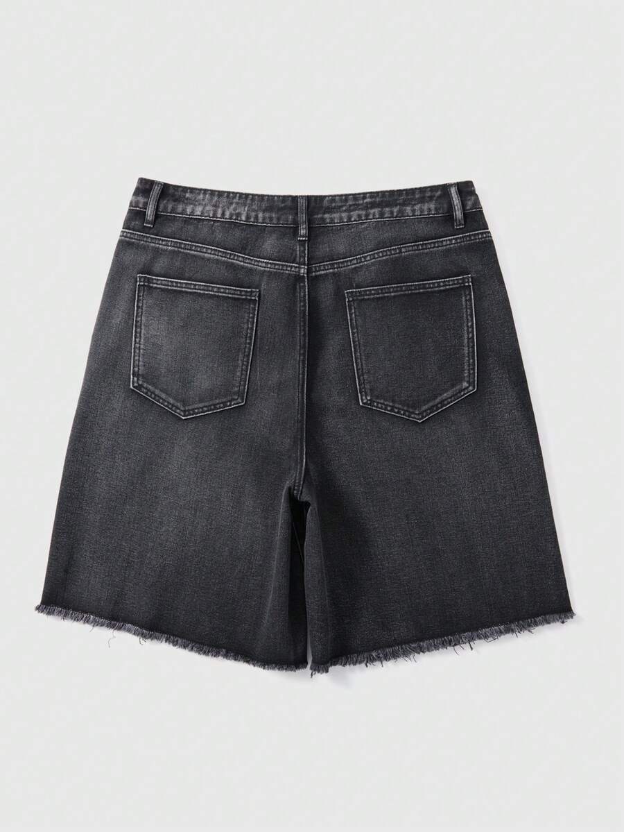 Men's Tiger Embroidery Pocket Frayed Hem Casual Versatile Denim Shorts