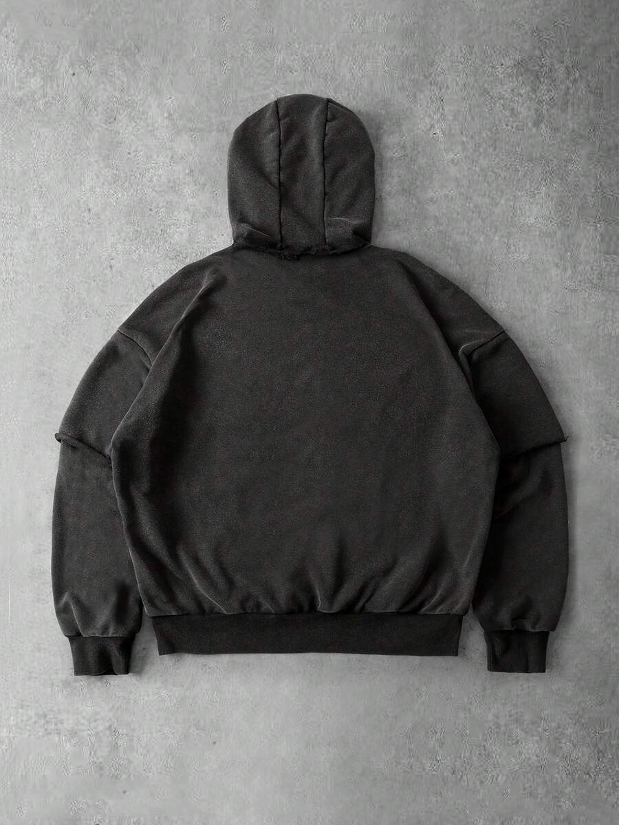 Men's Vintage Washed Hoodie With 2 In 1 Design, Loose Fit