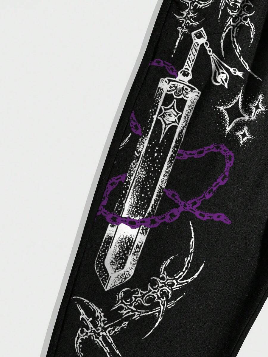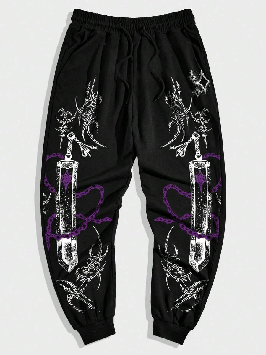 Men's Weapon Gothic Print Drawstring Waist Pockets Casual Jogger Pants