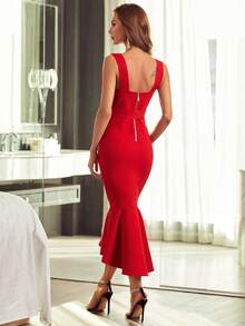 Mermaid Hem Belted Fitted Dress