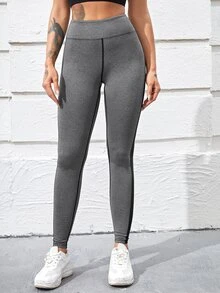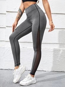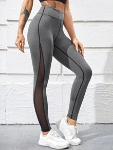 Mesh Panel Wide Waistband Sports Leggings