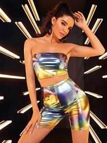 Metallic Bandeau Top & Cycling Shorts Set