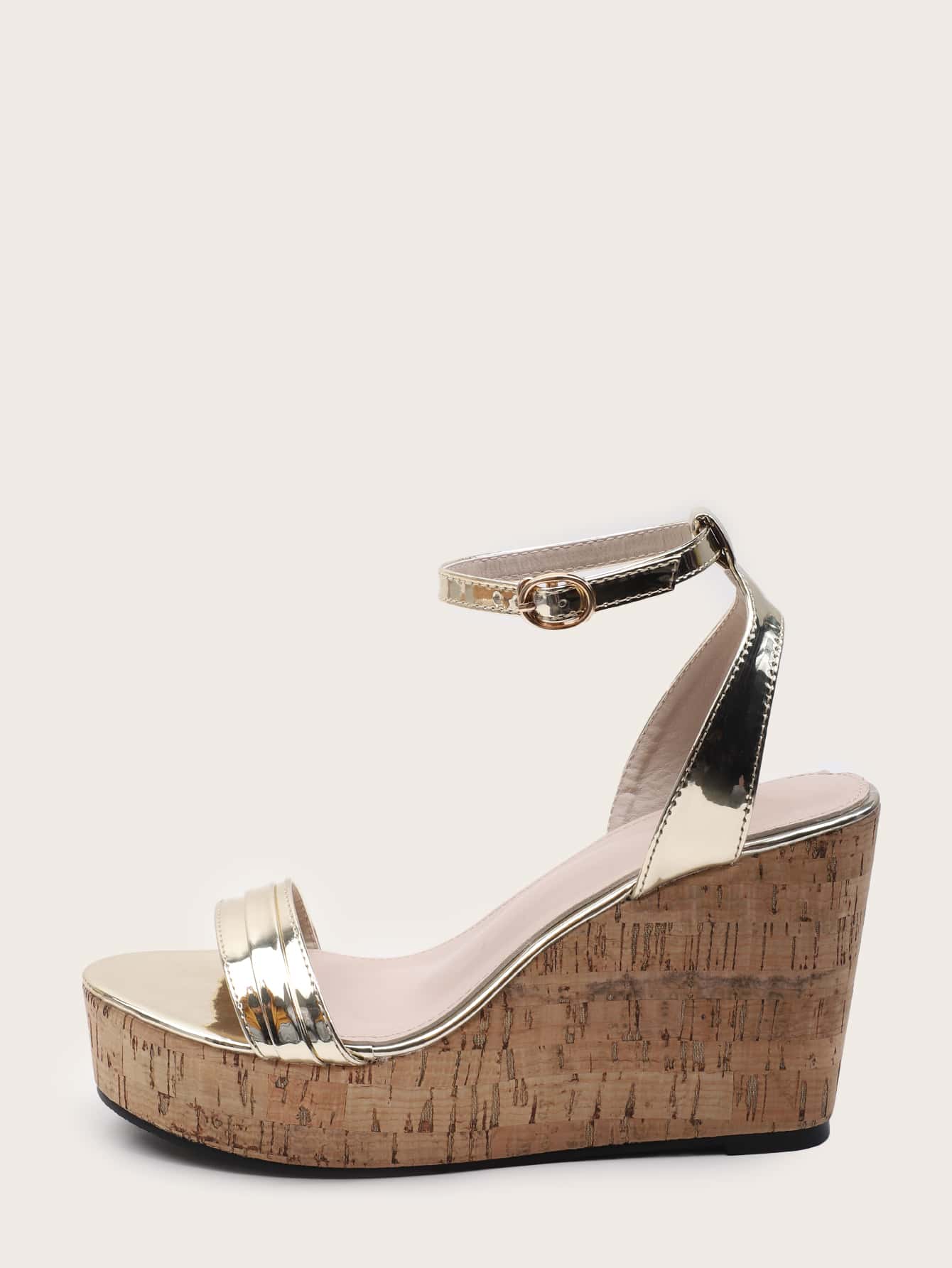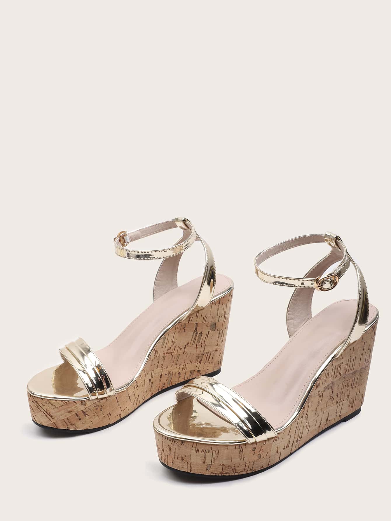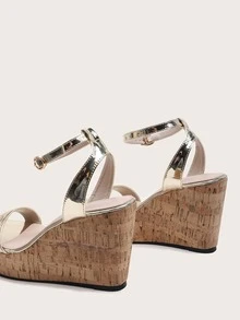 Metallic Cork Wedge Sandals