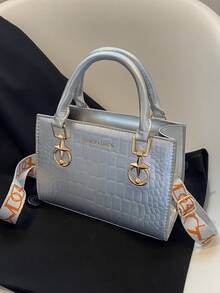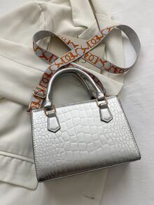 Metallic Crocodile Embossed Square Bag