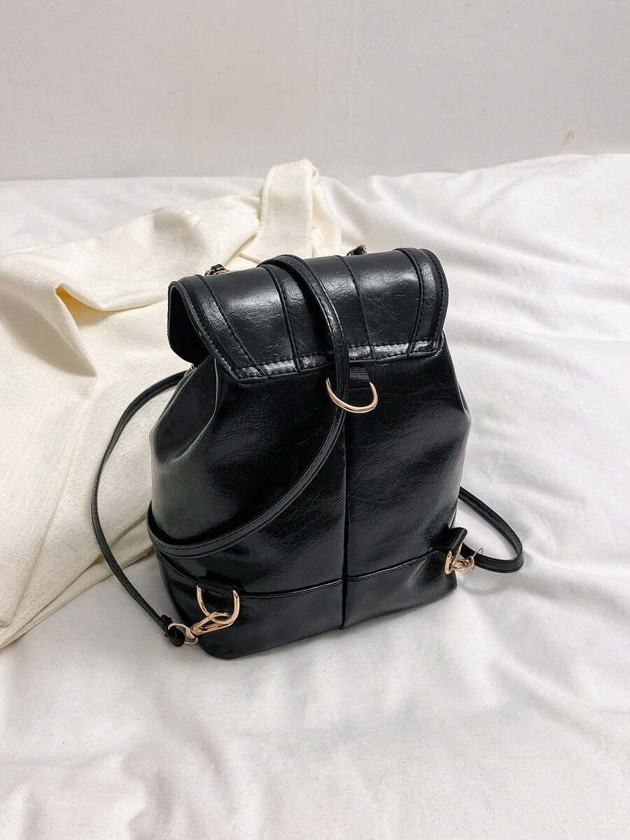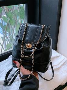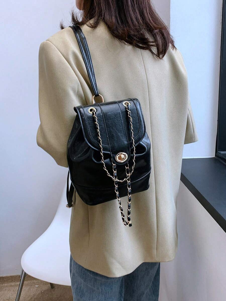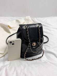 Mini Flap Backpack Preppy Solid Twist Lock For Work