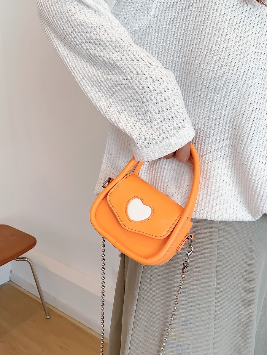 Mini Neon Orange Heart Pattern Flap Square Bag
