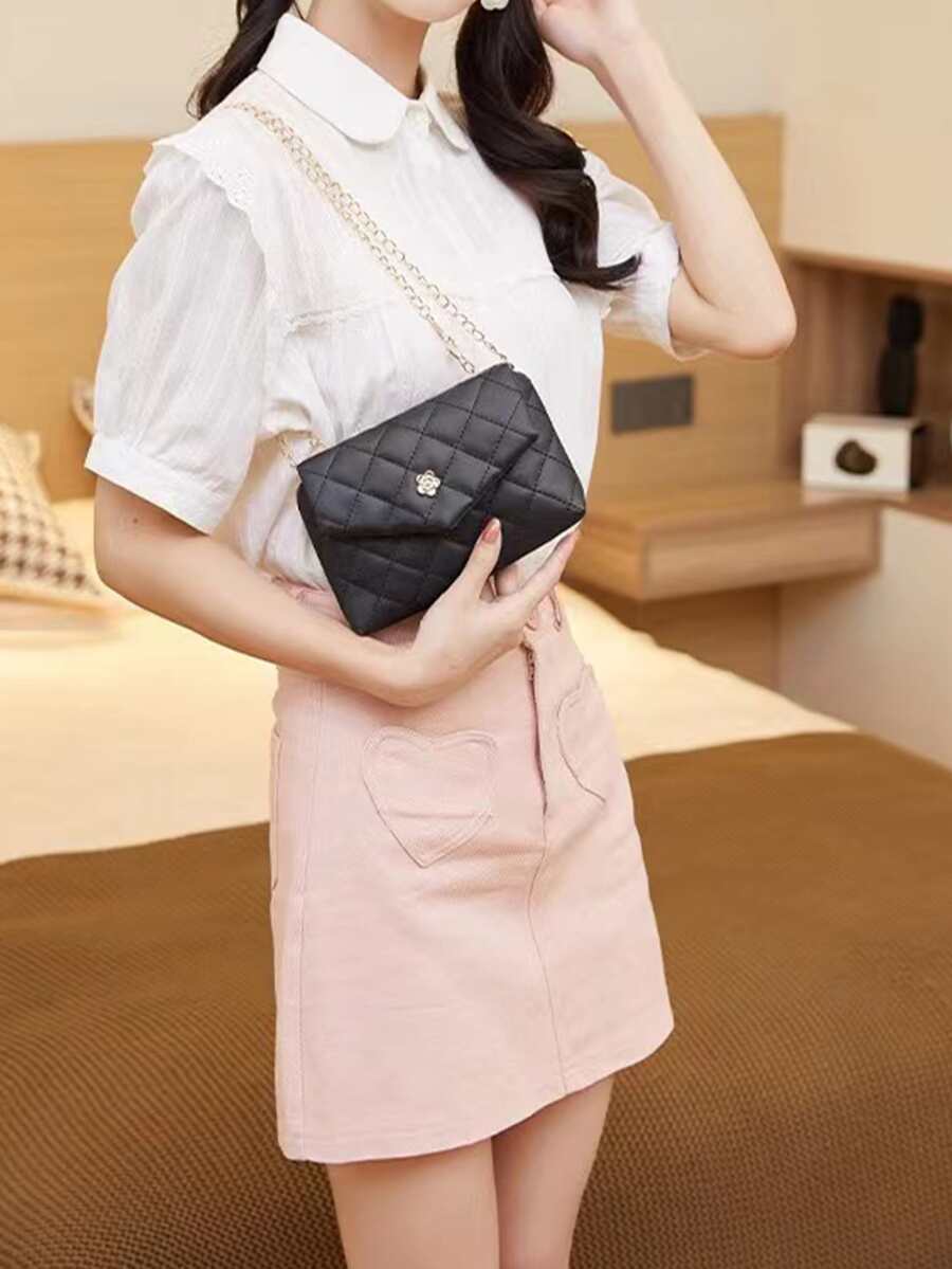 Mini Quilted Pattern Flower Decor Chain Square Bag