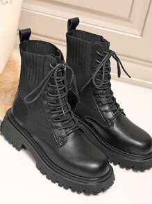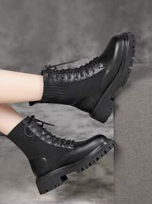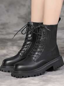 Minimalist Lace Up Front Sock Boots