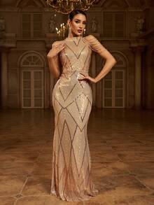 Missord Halter Neck Sequin Mermaid Prom Dress Elegant Formal Evening Wedding Guest Gown, For Graduation, Dinner Party Dress