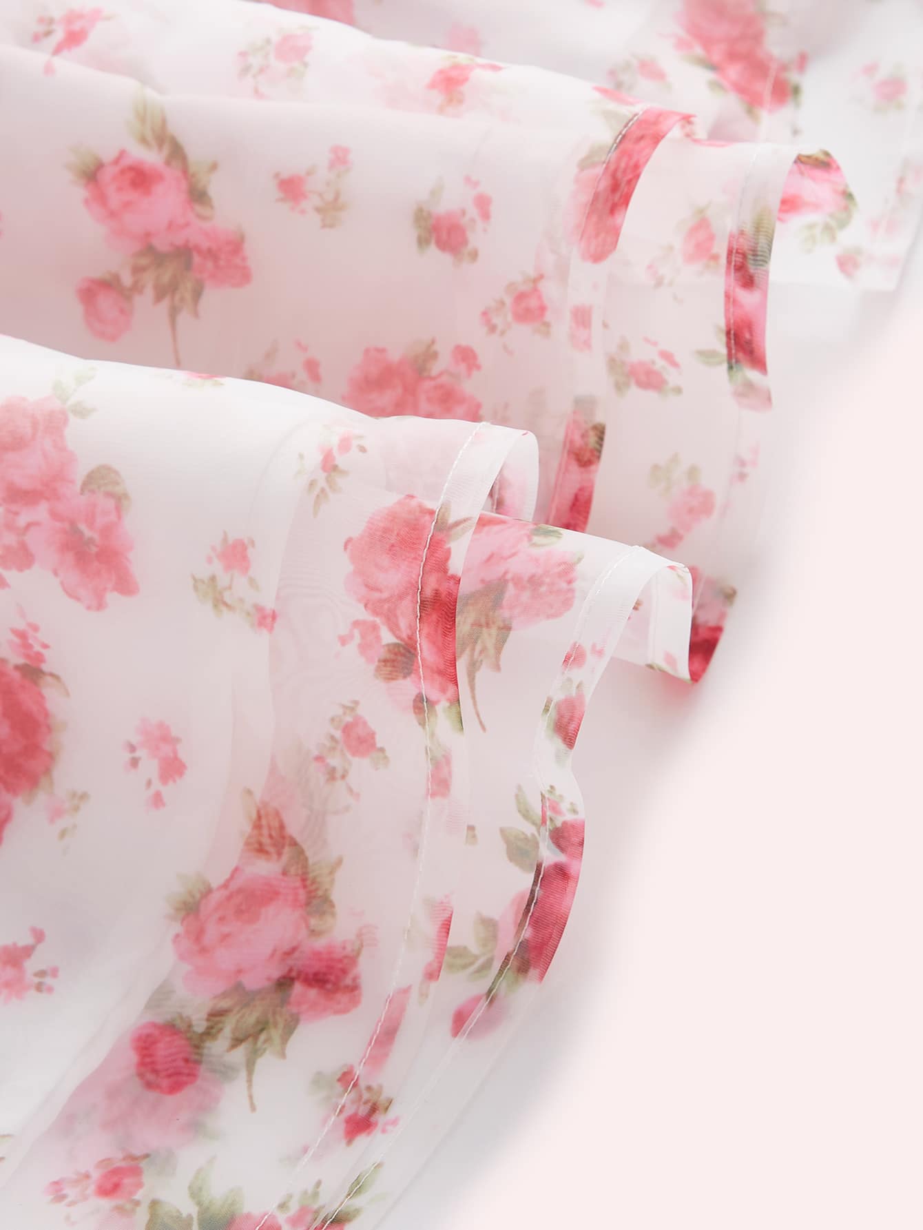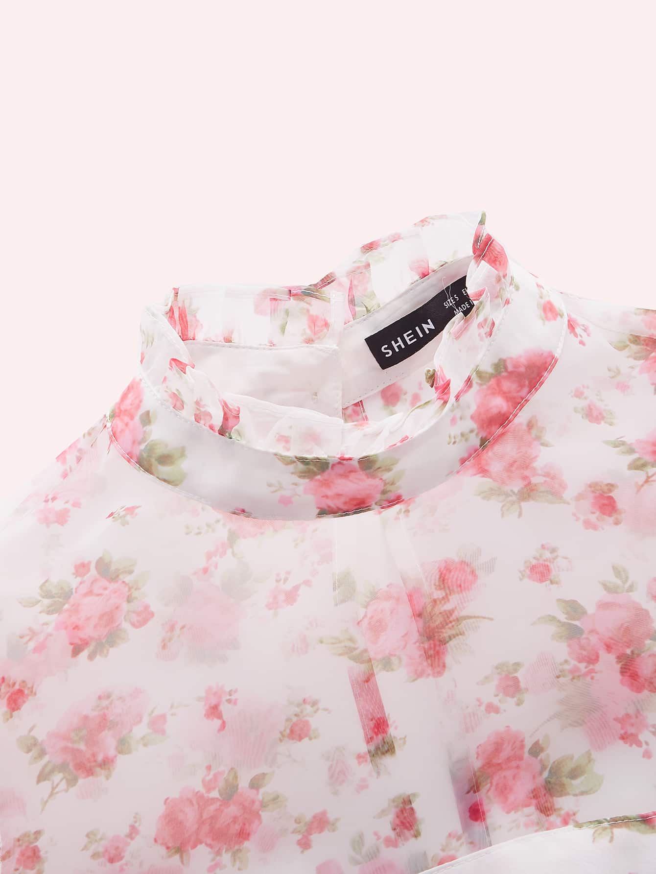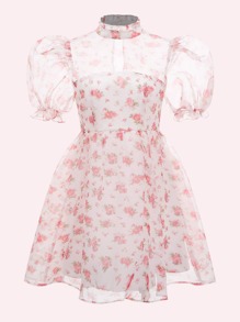 Mock Neck Floral Print Organza Dress Without Cami Top