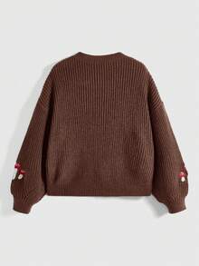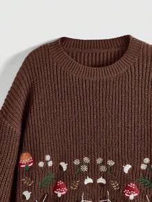 Fairycore Mushroom Embroidery Crew Neck Casual Versatile Long Sleeve Pullover Sweater