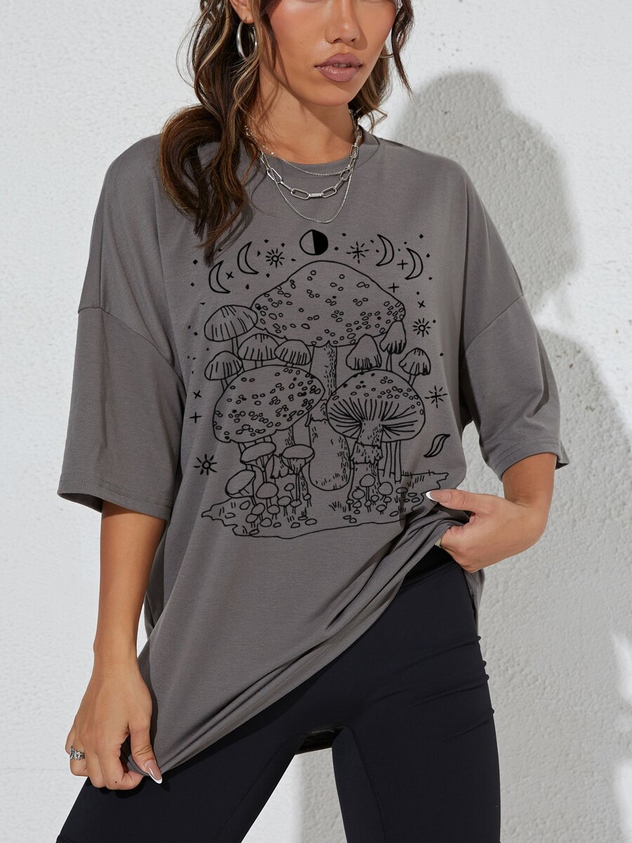 Mushroom Print Drop Shoulder Tee