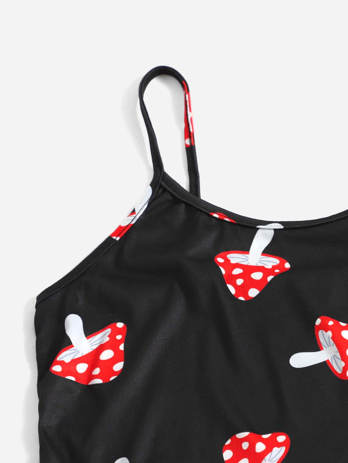 Mushroom Print Tie Front Lettuce Trim Pajama Set