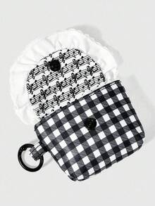 Kawaii Music Note & Plaid Pattern Portable Mini Pouch, Coin Purse, Earphone Case, Keychain Storage