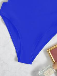 Neon Blue Contrast Tape Backless Knot Halter One Piece Swimsuit