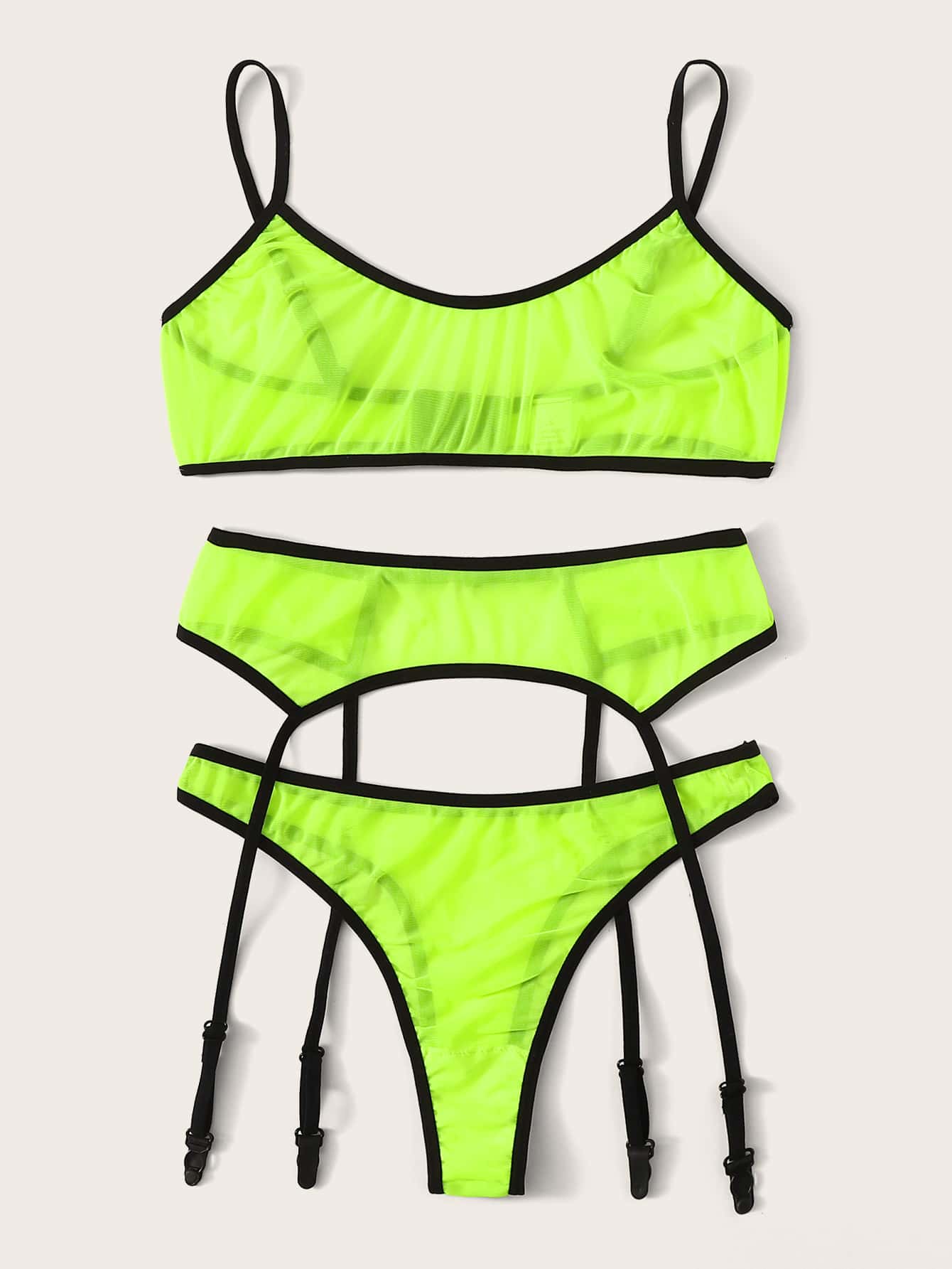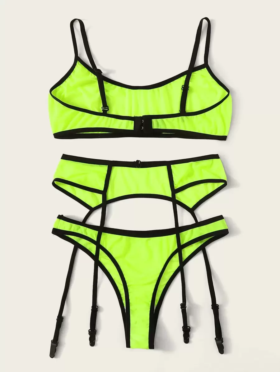 Neon Green Garter Lingerie Set
