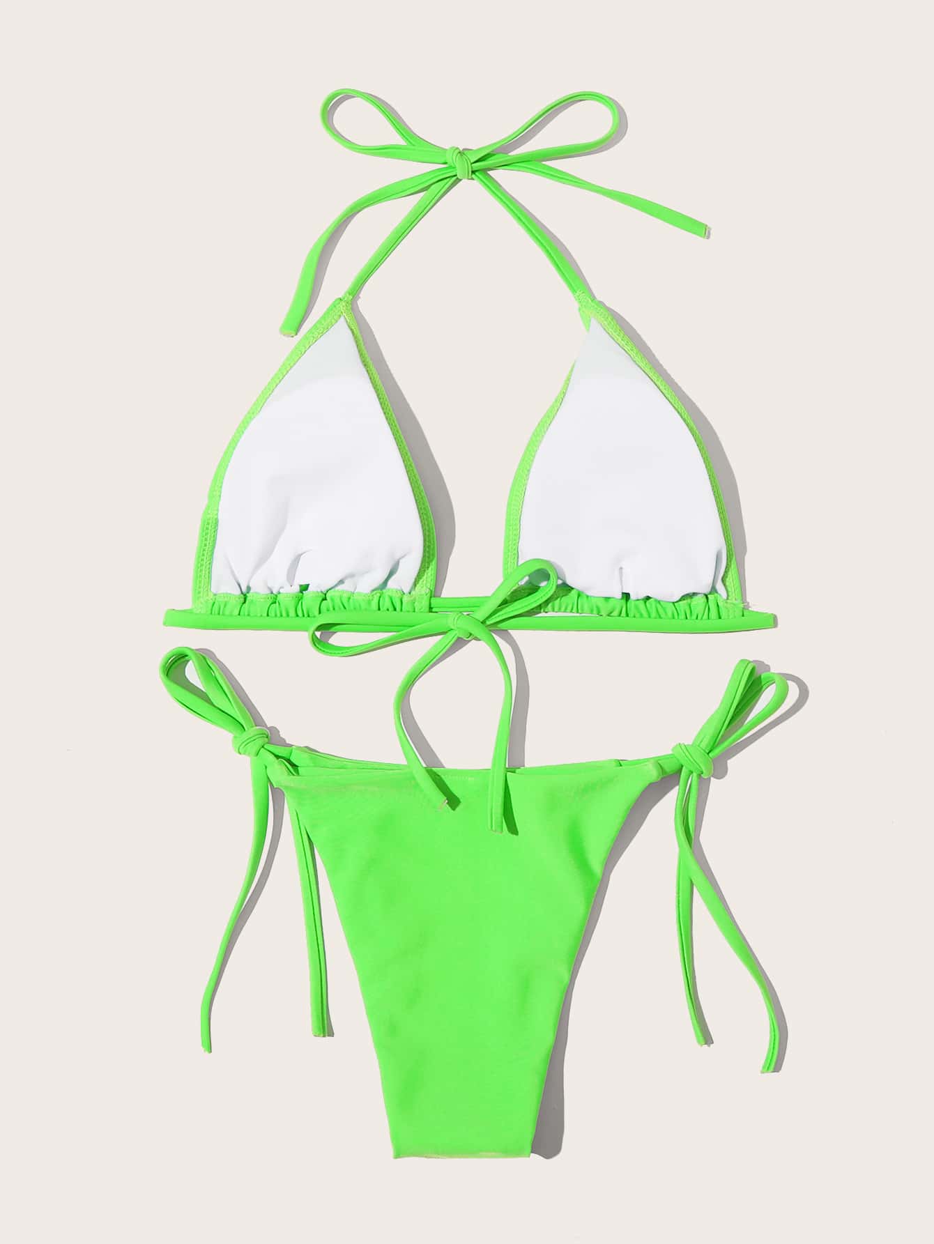 Neon Green Triangle Tie Side Bikini Set Summer Beach