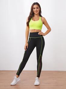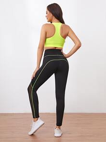 Neon Lime Racer Back Sports Bra & Contrast Binding Leggings