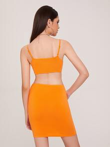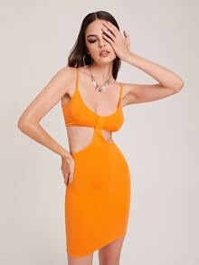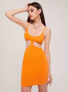 Neon Orange Cutout Waist Solid Bodycon Dress