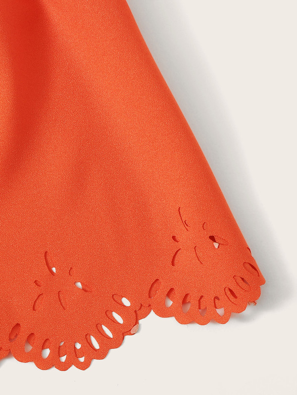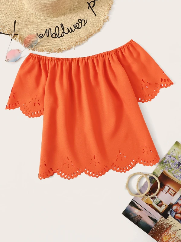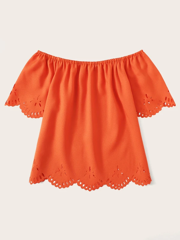 Neon Orange Laser Cut Off The Shoulder Blouse