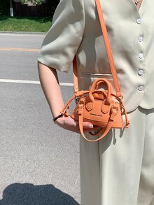 Neon Orange Letter Embossed Drawstring Design Satchel Bag