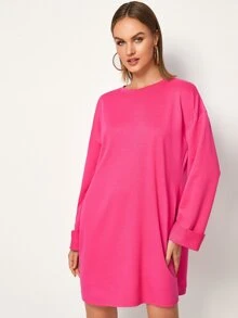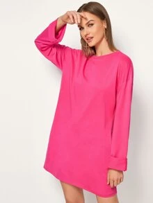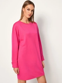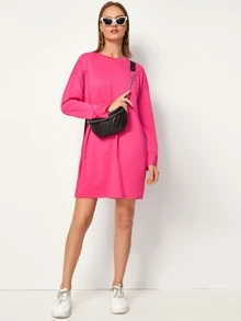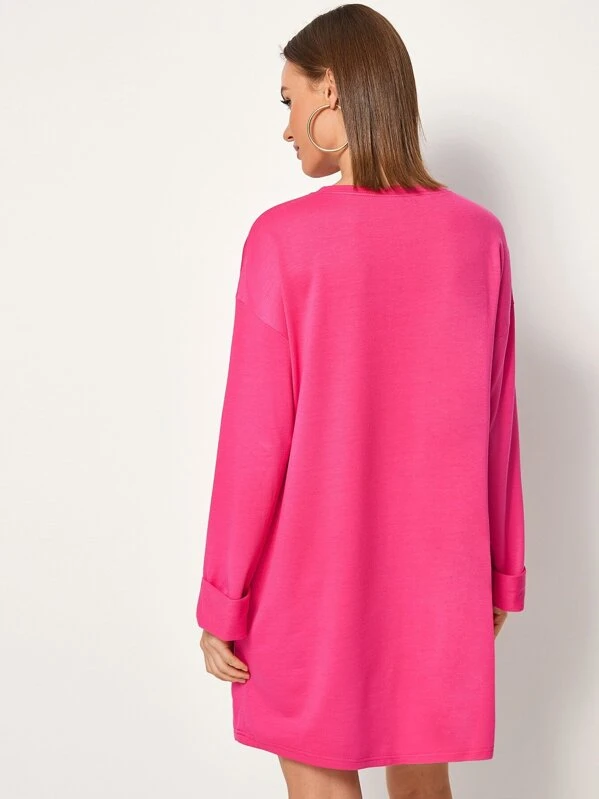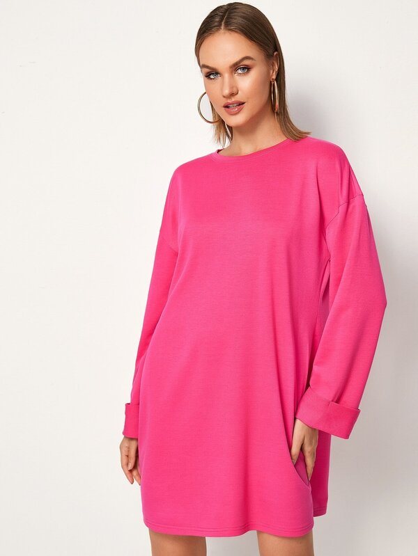 Neon Pink Drop Shoulder Sweatshirt Dress