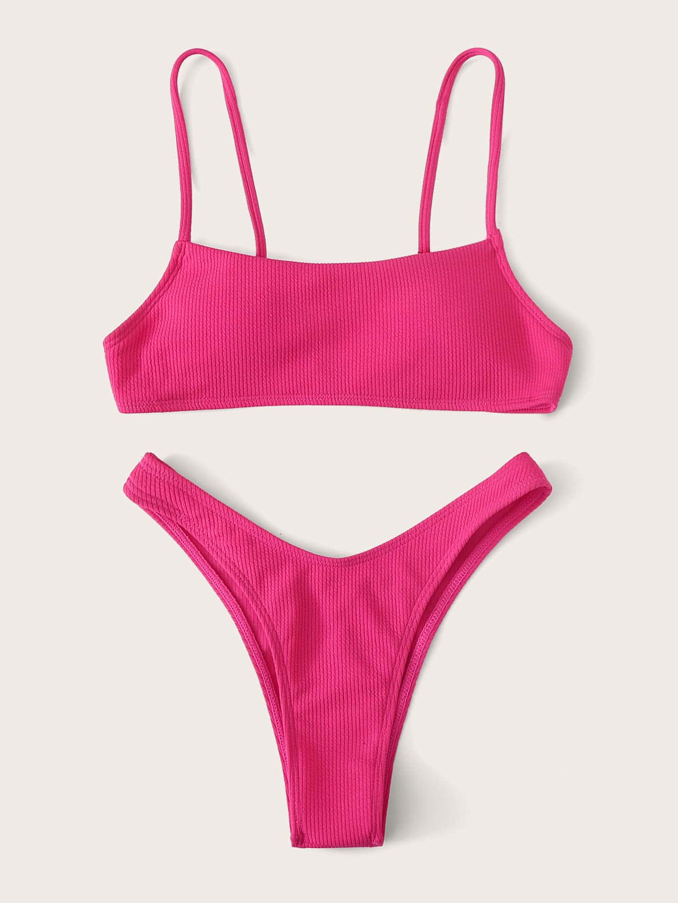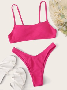 Neon Pink High Leg Bikini Set Summer Beach