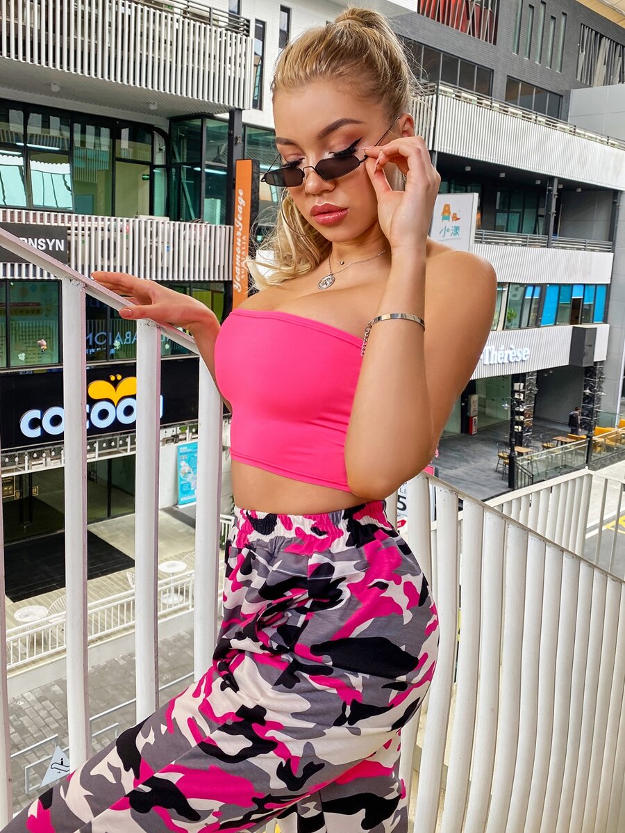 Neon Pink Tube Top & Camo Pants Without Bag