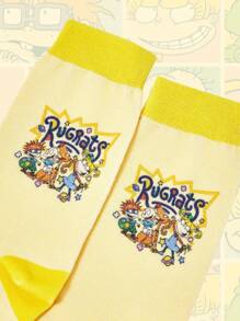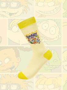Nick 90's X ROMWE Lovely & Funny Cartoon Pattern Colorblock Design Comfortable Crew Socks For Women
