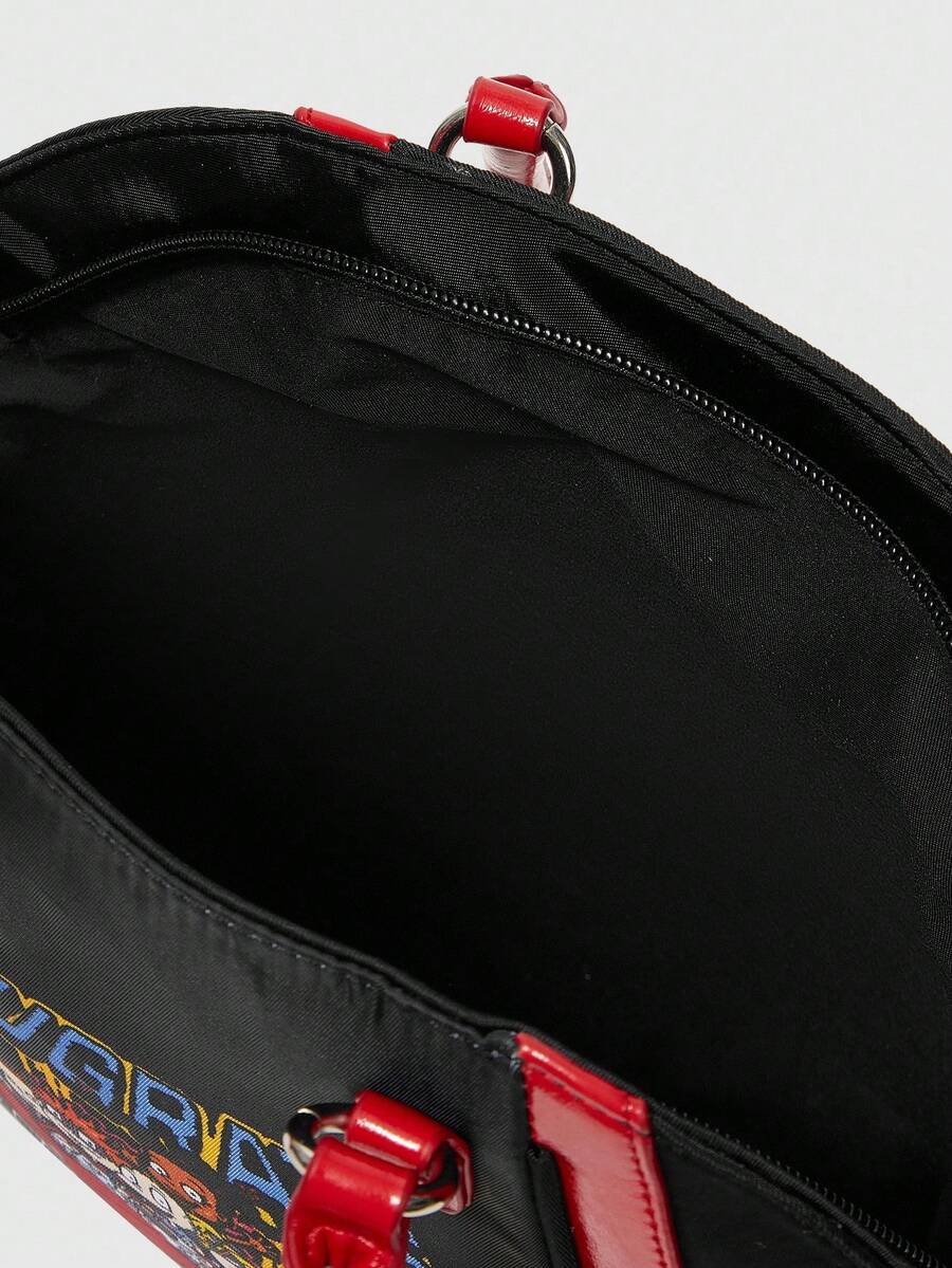 Nick 90's X ROMWE Women's Colorblock Cartoon Pattern Fashion Red Trim Top Handle Bag