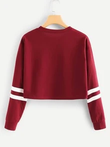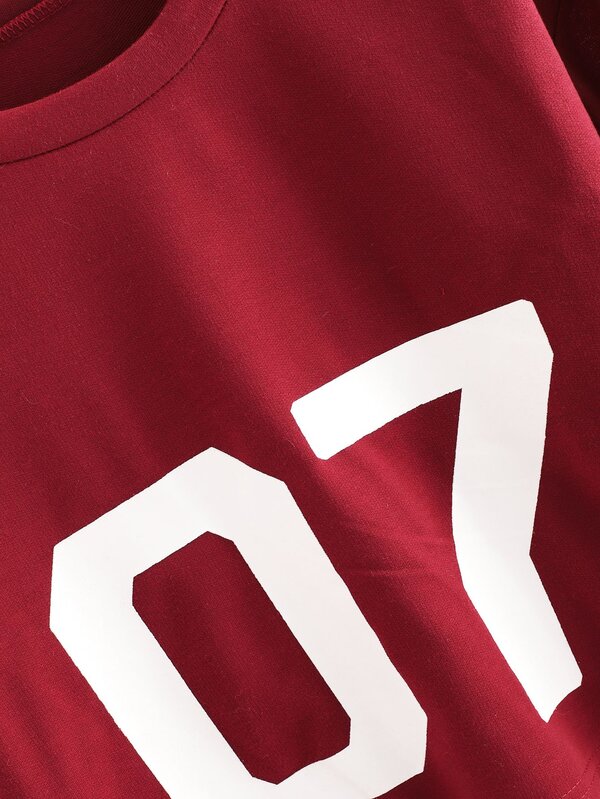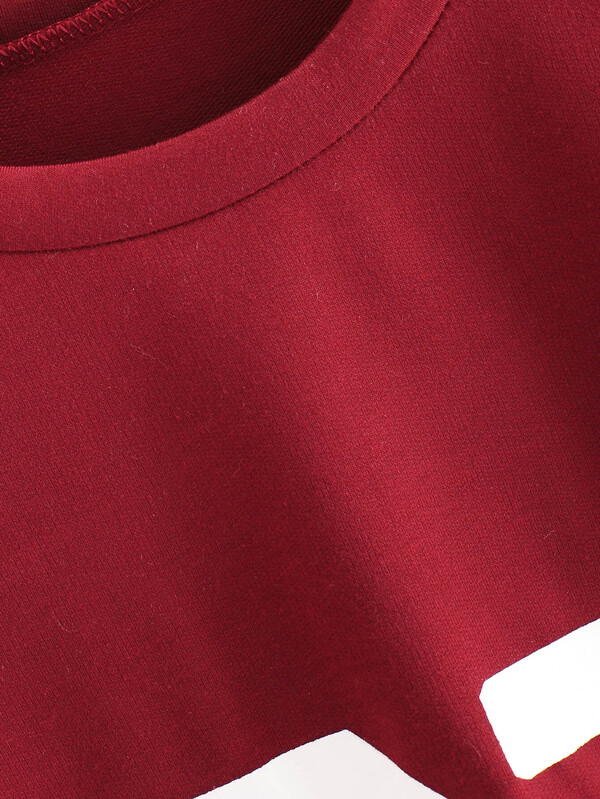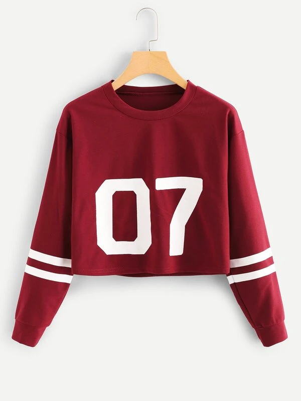 Number Print Striped Sleeve Sweatshirt