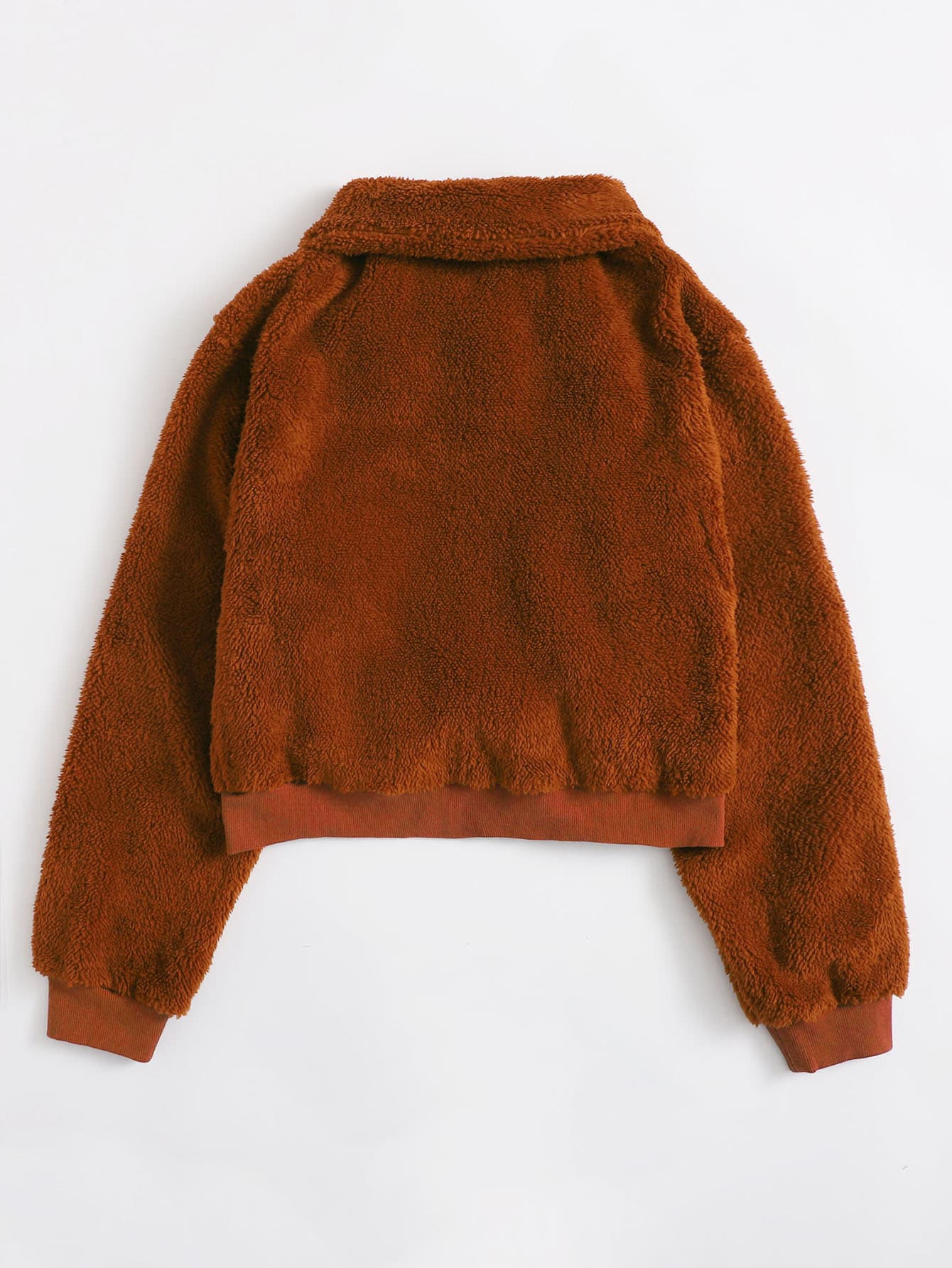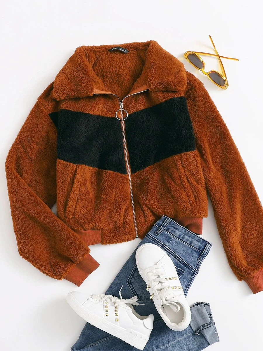 O-ring Zipper Front Colorblock Teddy Jacket