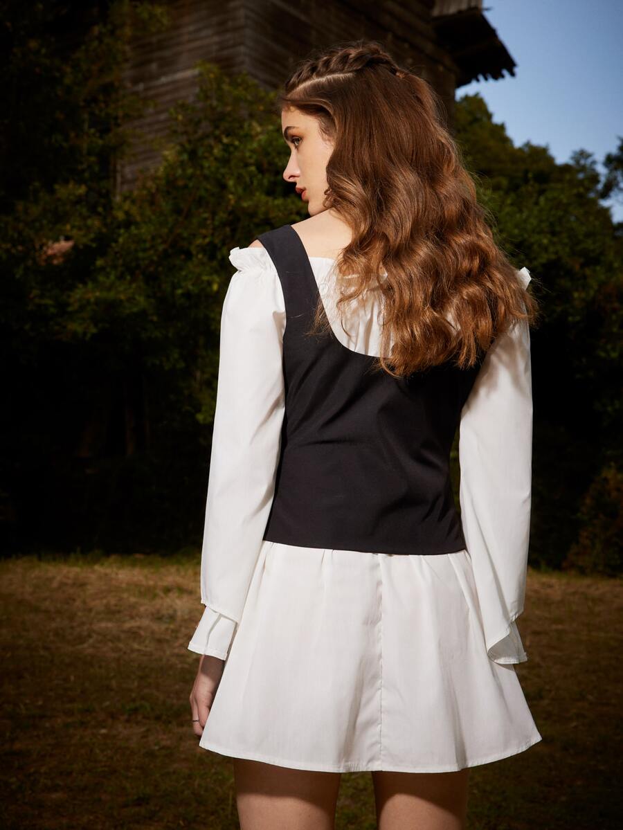 Off Shoulder Frill Trim Dress & Lace Up Top