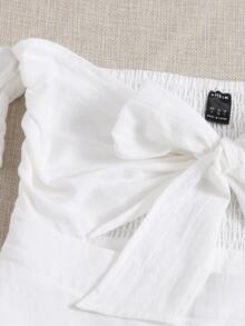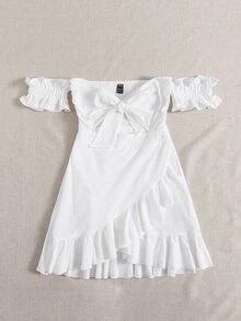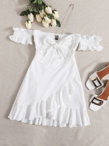 Off Shoulder Tie Front Wrap Hem Dress